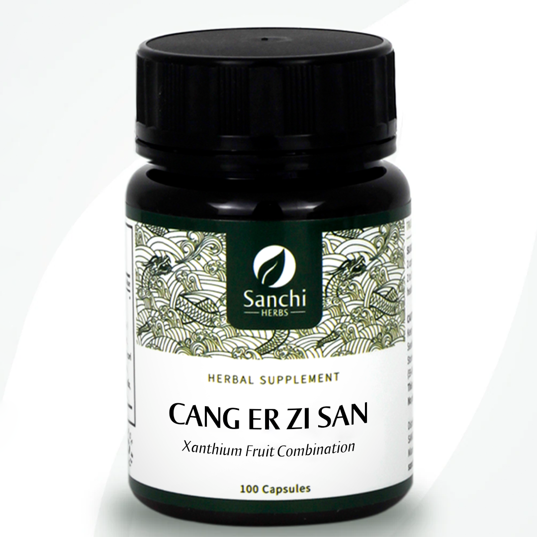 The Chinese Formula Cang Er Zi San, also known in English as Xanthium Fruit Combination, belongs to the category of formulas that RELIEVE EXTERNAL SYNDROME WITH HEAD AND NECK SYMPTOMS, acting on nasal disorders caused by Cold-Damp Phlegm transforming into Hot Phlegm.
