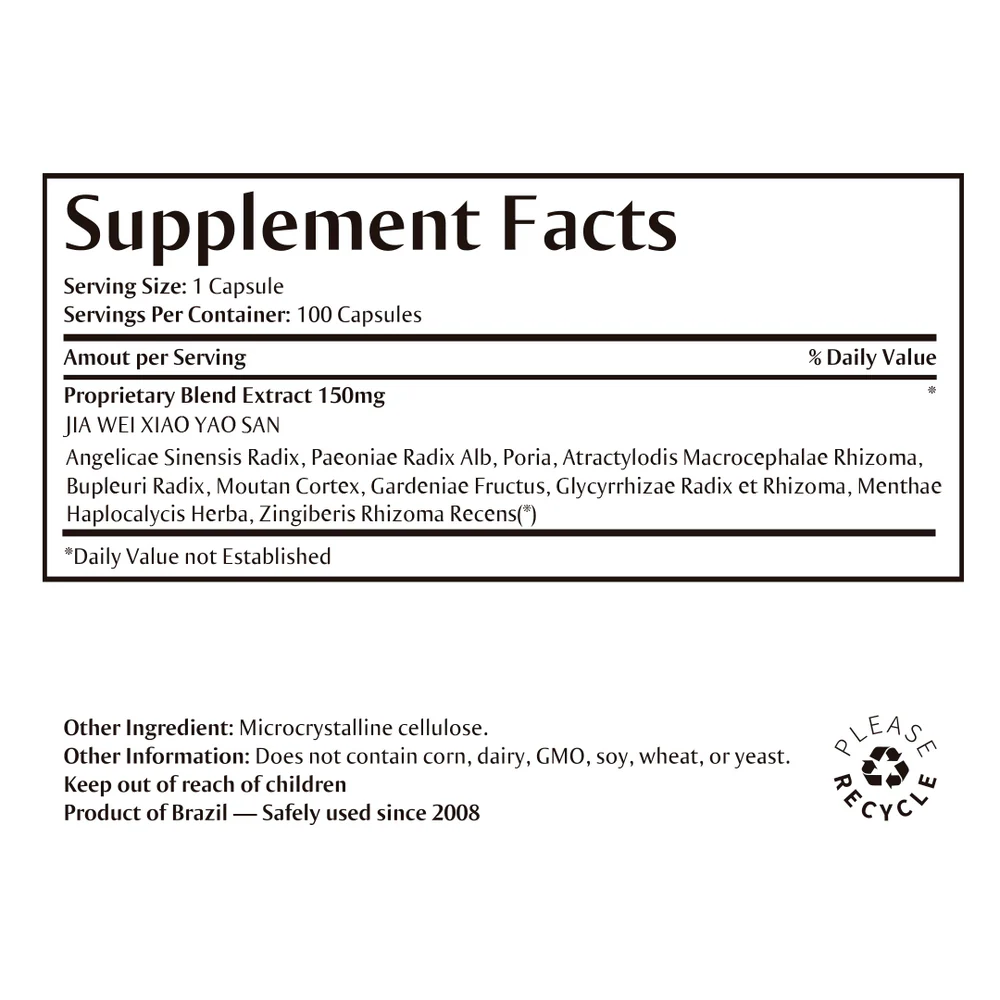 Indication: Indicated for Liver Qi stagnation with Blood deficiency and increased Yang or Heat: Menopause or PMS with headache, hot flashes.