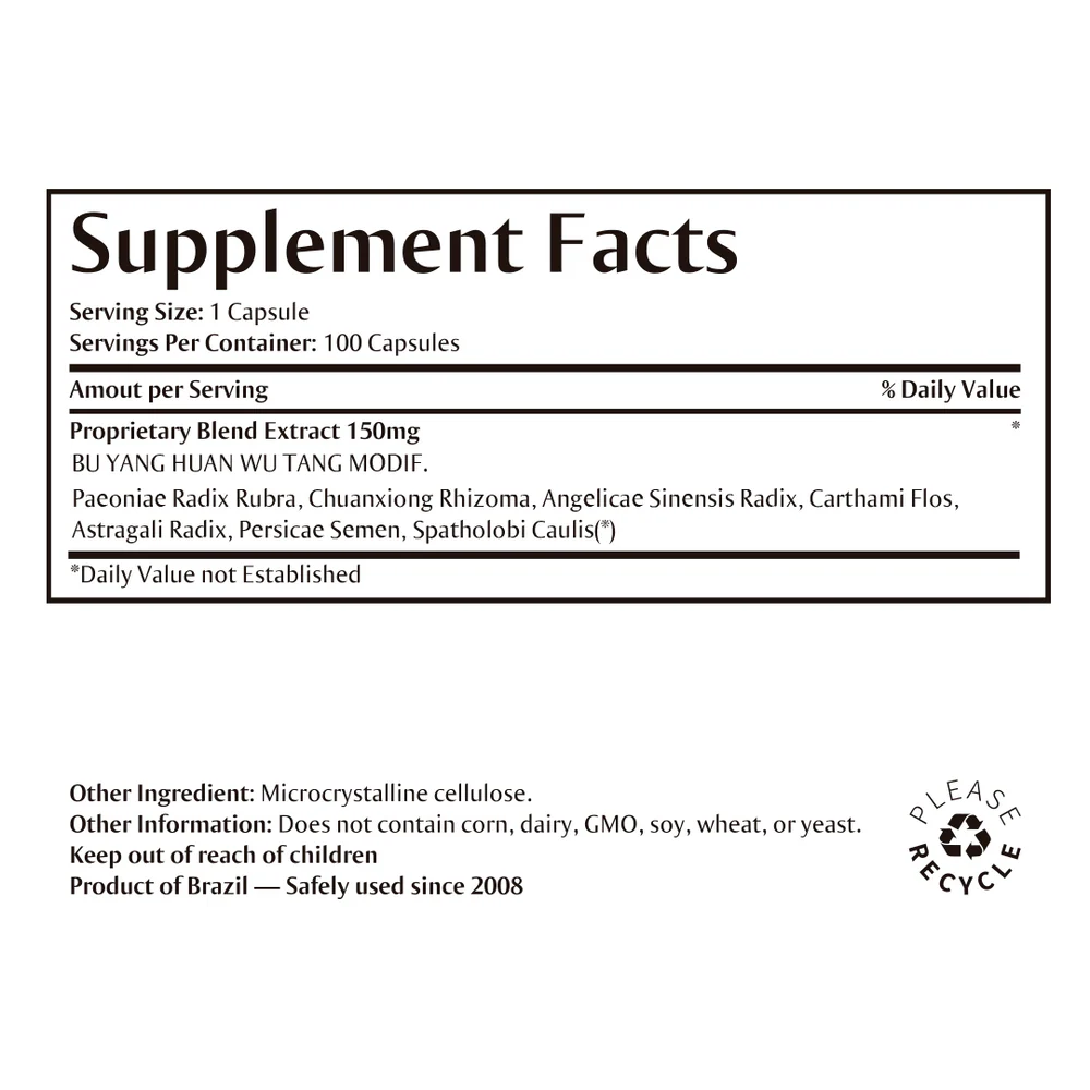 Indication: Indicated to activate Qi/Xue Circulation: Stroke sequelae, paralysis, circulatory deficits.