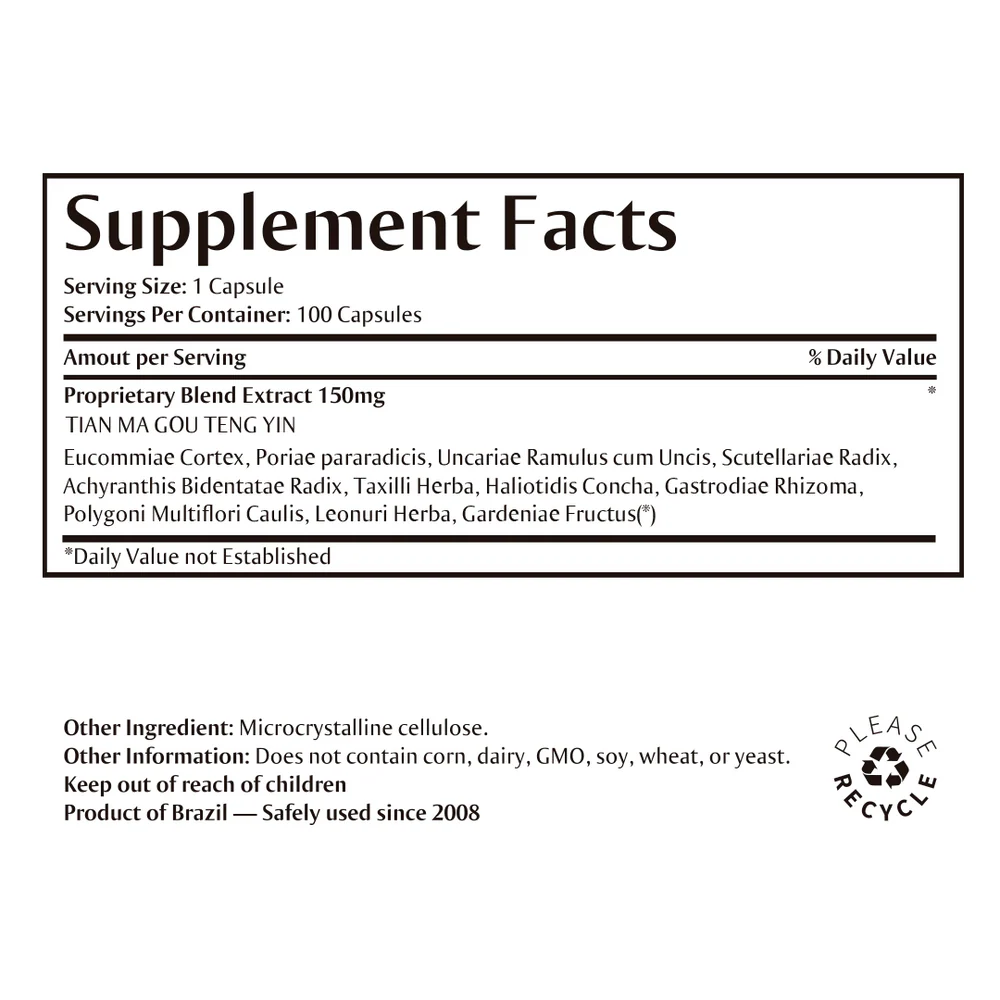 Indication: Indicated for Liver Yang Hyperactivity and/or Liver Wind (Descending Yang, Eliminating Wind): Irritability, Headache (frontal, occipital, vertex, throbbing), facial hyperemia/heat, paresthesia, tremors, dizziness, vertigo, visual disturbances, tinnitus…