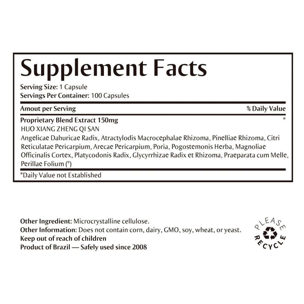 The Chinese Formula Huo Xiang Zheng Qi San, also known by its English name Citrus and Pinellia Combination, belongs to the category of AROMATIC FORMULAS THAT ELIMINATE DAMPNESS, acting on the syndromes of Cold-Dampness in the Middle Burner; Damp-Phlegm in the Middle Burner.