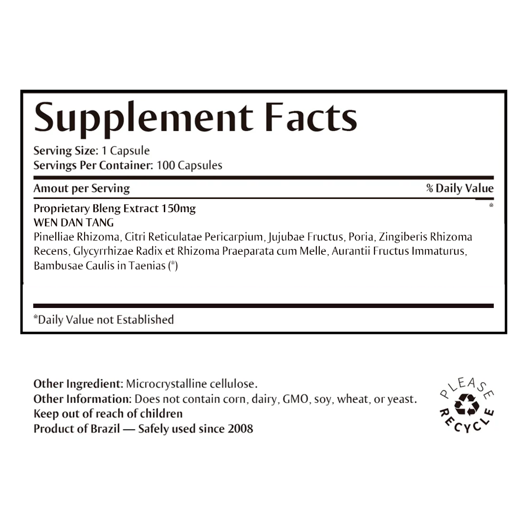 The Chinese formula Wen Dan Tang, also known by its English name Bambusae and Poria Combination, belongs to the category of formulas that ELIMINATE DAMPNESS AND RESOLVE PHLEGM, acting on the syndromes of Heart Phlegm-Heat; Gallbladder Phlegm-Heat; Gallbladder and Heart Disharmony with Phlegm-Heat.