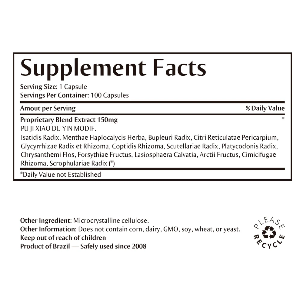 Indication: Indicated for Wind-Heat Toxic/Endemic: Scalp, Face and Eyes.
