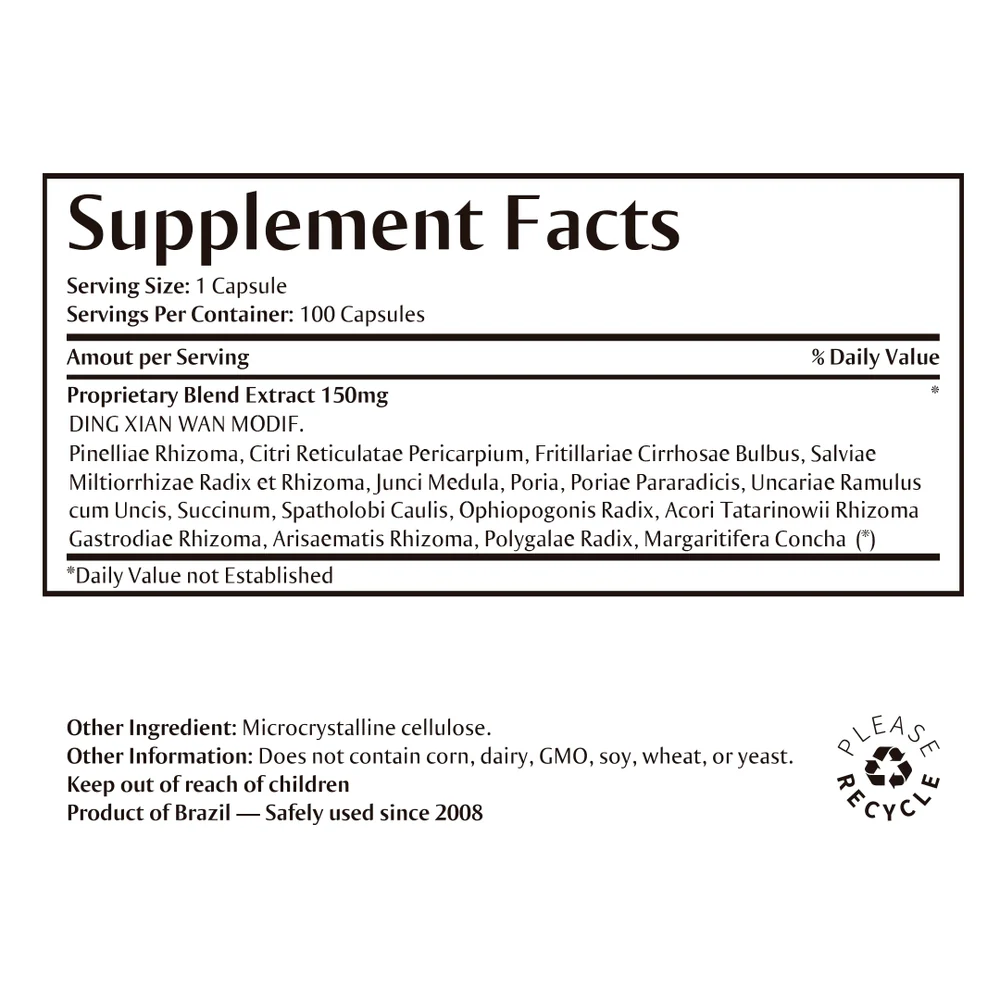 The Chinese Formula Ding Xian Wan Modif., also known by its English name Gastrodia and Amber Combination, belongs to the category of formulas that ELIMINATES PHLUMS AND ELIMINATES WIND, acting on syndromes of Liver Wind-Phlegm, Epilepsy.